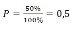 Самым простым примером для иллюстрации понятия маржи будет встреча равных по силе соперников. Вероятность победы первой и второй команды разделится поровну, т.е. 50% на 50%. Для удобства в расчётах переведём её в безразмерную величину (обозначим вероятность буквой Р):